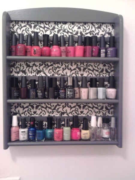 Nail polish can be highly addictive. But what to do with all those pastel-hued bottles? Hang up an old thrifted spice rack and arrange the bottles on shelves like a rainbow.