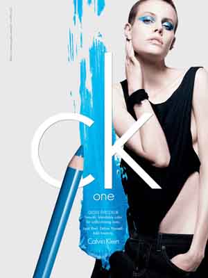 The 130-piece collection is based around this notion: look real, define yourself, and add intensity. The Calvin Klein makeup line includes CK One’s answer to the BB Cream, a 3-in-1 foundation that also acts as a daily serum, embodying the look real aspect. Their second principle, define yourself may be found in products like a mascara with an extendable wand, and long wear lipsticks ton enhance your facial features. While add intensity is seen in ads for Calvin Klein’s eye gloss pencils, shown in a bright blue.