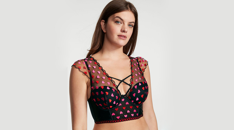 Turn up the heat with the Valentine’s Day collection from Victoria’s Secret. This Lightly Lined Heart Embroidery Cap-Sleeve Corset Top is a cute corset that begs to be shown off.