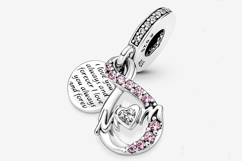 Pandora always has the cutest charms – This Mom Infinity Pavé Double Dangle Charm is a modern take on an age-old symbol; it features pink cubic zirconia sparkling on one arm of the infinity motif. The sterling silver dangle is engraved with a message: “I love you always and forever.” The perfect way to say thank you to Mom for being there for you.