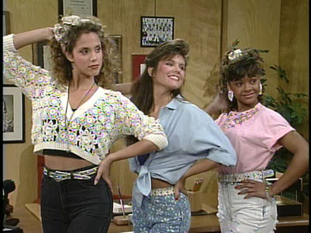 While many will argue that Kelly Kapowski was the real style star of Saved By The Bell, Jessie is the one with the real timeless(ish) fashion sense. Just look at this crochet crop sweater/high-waisted jeans combo. Mixed with just the right accessories, this look will easily translate to your modern day afternoon with pals. Keep the long necklace and shiny belt, but swap out the bow in the hair for a top knot and you’ll be 2016 Spano (maybe not quite so excited).