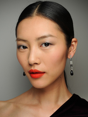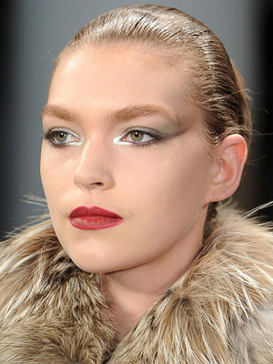 The colour for lips this fall is red. Imagine every shade of red, ranging from deep red, crimson, burgundy, violet, and plum. Dark lips are in on the runway, with deep red a favorite shade. Again neutrals play a part in the fall makeup lineup where the bold deep colours are accompanied by choices of neutral barely there lipsticks in nude, beige and pale pink.