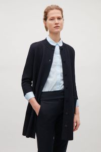 I will spend good money on a few good quality knits. Generally I err on the side of being cold, as I work in an office, and having to rely on a threadbare sweater/cardigan just sucks. This jacket-style cardigan from COS feels totally modern with its embossed texture and A-line shape, and will make a great transitional piece from summer to fall, too.