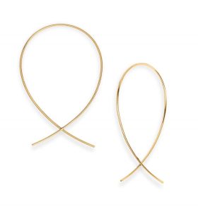 I’ll stop altogether buying cheap fake gold jewelry. I will toss any cheap fake gold jewelry that no longer looks gold. These delicate 14K gold ‘Upside Down’ Hoops by Lana Jewelry (above) are a fun twist on a classic style and will go with just about everything.