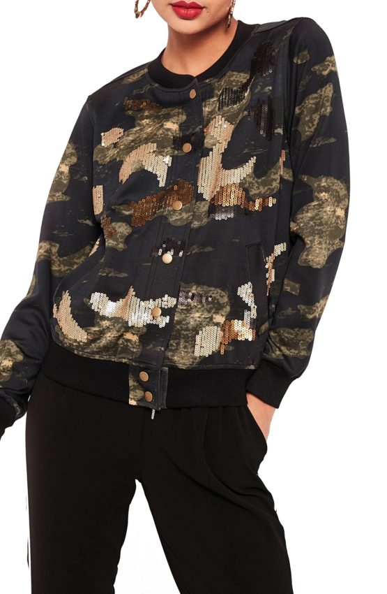 In case you want more glittered camo in your life, this bomber jacket should do the trick.