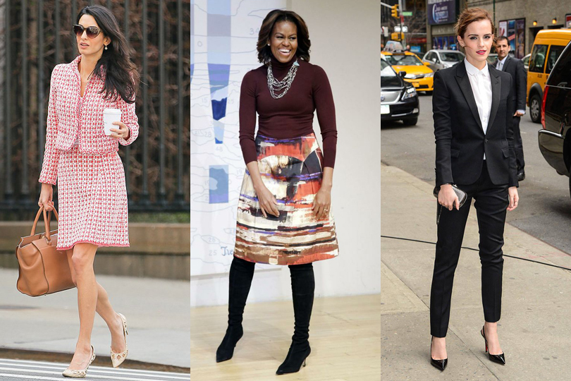 As for strong female representations that hold a strong wardrobe and skill set to match, Peacock points to Amal Clooney, Michelle Obama and Emma Watson.