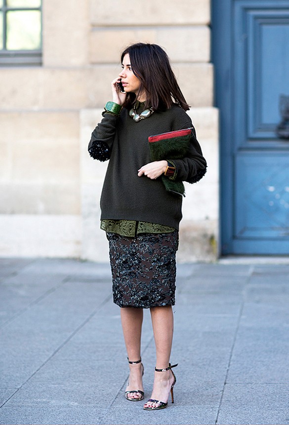 Play mind games with onlookers by layering a skirt on top of a dress. Basically the inception of fashion. Tip: Opt for a skirt that flares out and has a slit so the bottom layer is visible.