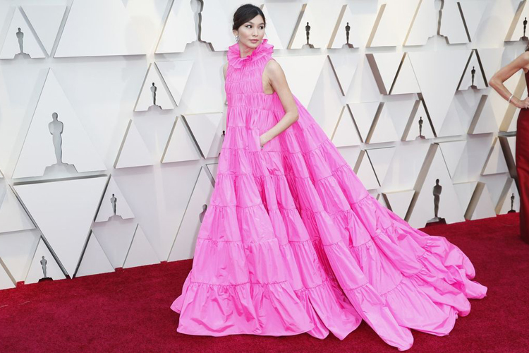 Crazy Rich Asians star Gemma Chan is a true fashion icon on the rise who never disappoints on the red carpet. This high-neck fuchsia taffeta gown with expanding frills from Valentino’s most recent Couture collection might just be her best red carpet look yet.