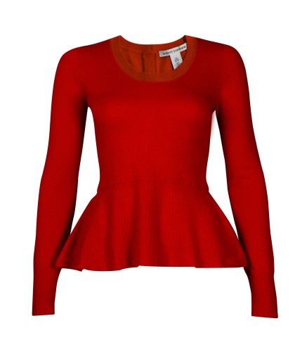 Try: Autumn Cashmere Button Back Peplum Sweater in Tomato, $320.