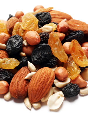 A mixture of nuts, dried fruit and cereal is a great fix when you’re on the go. The nuts will keep you feeling full and energized with protein and a dose of healthy fat, while the dried fruit is a sweet, chewy, vitamin-packed counterpoint to their crunchy companions.